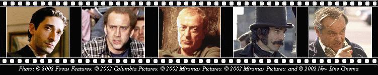 When he won the Golden Globe in January, having recently tied Daniel Day-Lewis for the LAFC prize, and amidst seeing About Schmidt to an inordinately successful commercial run (so far $50 million and counting), Nicholson seemed unstoppable. The PR surrounding his twelfth nomination and the prospect of a record-tying fourth win may help draw supporters. And it goes without saying that this is Jack, in his fifth decade as the self-consciously coolest kid in Hollywood's school. |