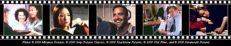 Most of those trophies were for Original Screenplay, where offbeat and witty mean more than in Adapted Screenplay, where earnest and high-minded tend to count for more (see Traffic). Chocolat can't possibly pretend, even to its rosiest advocates, to have a single scene we haven't scene a million times before, while the other nominees here are simultaneously more fresh and more forceful. |